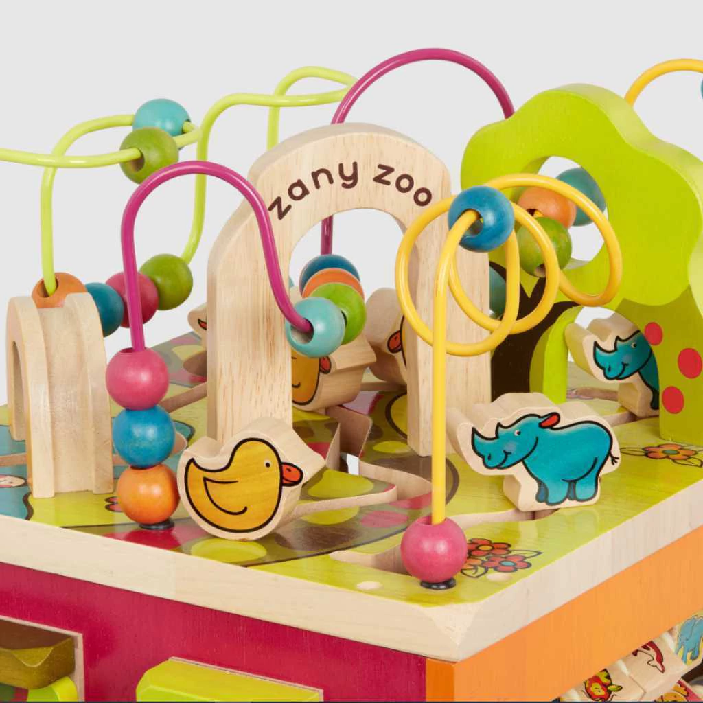 -Explora cinco lados de la diversión y aprende sobre un montón de animales con nuestro centro de actividades de madera