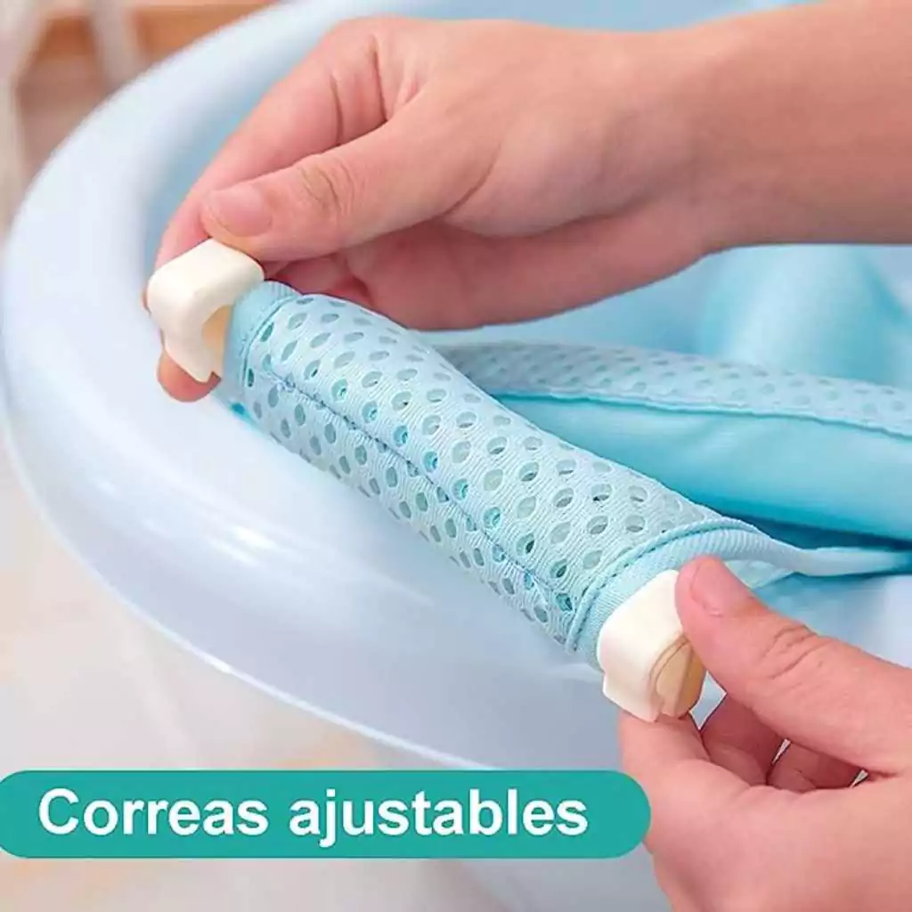 -El relleno del cojín sostiene al bebé en su lugar, apoyando su cuello y cabeza por encima del agua durante el baño.